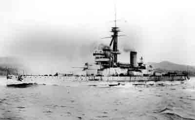 Data for Brazil Battleship Sao Paulo - picture below; 19,300 tons, L=543 feet, maxspeed 21 knots, Laid down in 1907, launched on April 19, 1909 and commissioned in July 1910