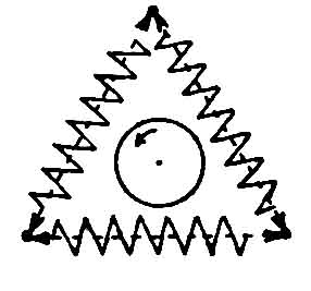 This type of electromagnetic-field system consists of three linear magnetic fields, which are arranged at angles of 120 round a rotor. The phase-differences of the three alternating magnetic-fields, which have the same frequencies (say 50 Hz) are also at each 120 degrees. Each alternating field is in itself an exact linear vibration oriented in one direction. The rotating field exists only if the three linear vibrations are combined together with the proper phase-relation between them. So a two-dimensional rotating field in space is created. It can force a piece of magnetic material to rotate around its axis with a great power.