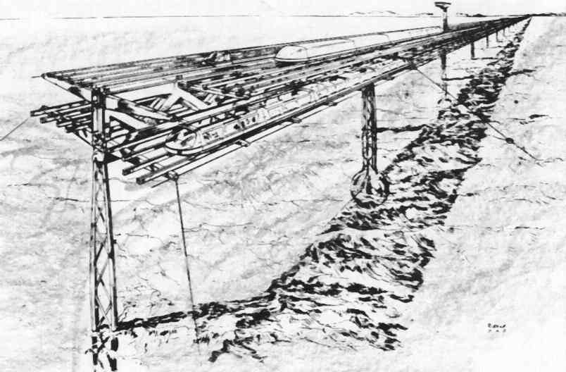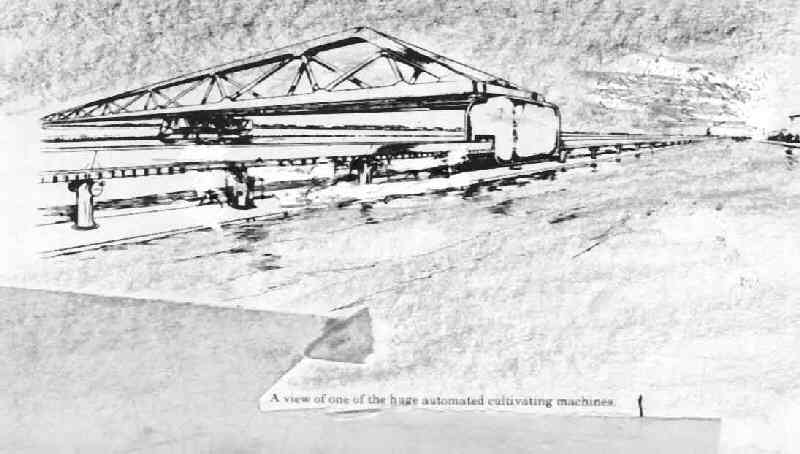 There were individual cars for small groups, collective units like trains for mass movement, cargo units for commerce, and even a peculiar development something like a hotel tram. A group of people wanting to travel together would order a unit that was fitted out as a self-service hotel and simply go where the mood took them. The system was marvelously efficient and could move over one million persons per hour past any point using only the upper six-lane rail system between the house blocks. The rail system and equipment was designed with a useful life expectancy of 1,000 years, a kind of quality undreamed of on Earth.