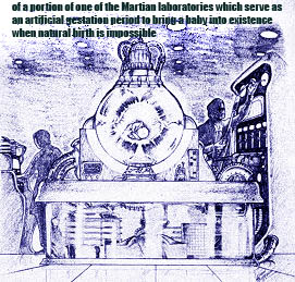 View of a street in one of the Martian underground cities inside the metal tubes which the astronomer takes to be canals. from the book by  ERNEST L. NORMAN from1956