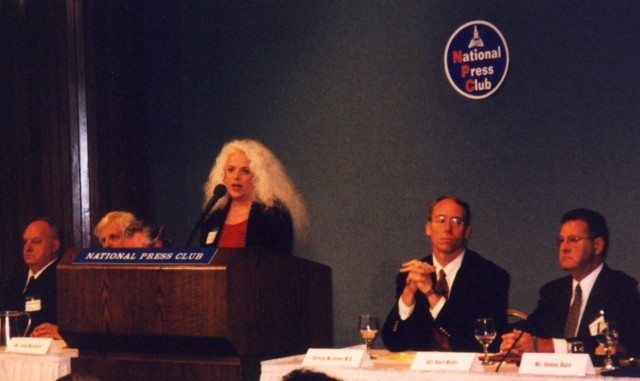 mai 2001 der Greer sitter høyre for Dr. Carol Rosin som taler