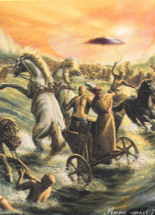 Fra Gml.Testamentet: "det var et meget langvarig mørke. Mørkets siste dag var ved det "Røde hav". Da verden dukket ut av mørket, ble havbunnen avdekket, vannet ble splittet og tårnet seg opp i murer som en dobbelt flodbølge"