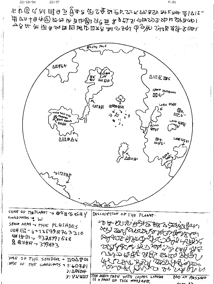 d'avant. Les autres messages dans l'écriture extraterrestre est