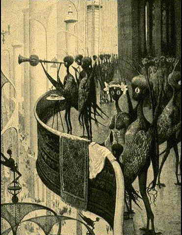 Zeichnung von einer des Auserders läuft Leben auf dem Planeten Nibiru.