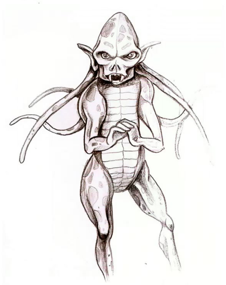 tentacles coming out of the back of their head. They are quite wild and aggressive. This race has visited Terra five